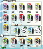 其他口味:冰泉薄荷、冰紅茶、咖啡、哈密瓜、士多啤梨、奇異果、彩虹糖、提子、桃提子香蕉、橙、沙士、烏龍茶、番石榴、百香果、紅酒冰、芒果、芒果奶昔、芒果百香果、茉莉龍井、荔枝、菠蘿、蔓越莓、薄荷口香糖、藍莓、蘋果梳打、西柚、鐵觀音、雜莓、雪條、青檸、香芋雪糕。